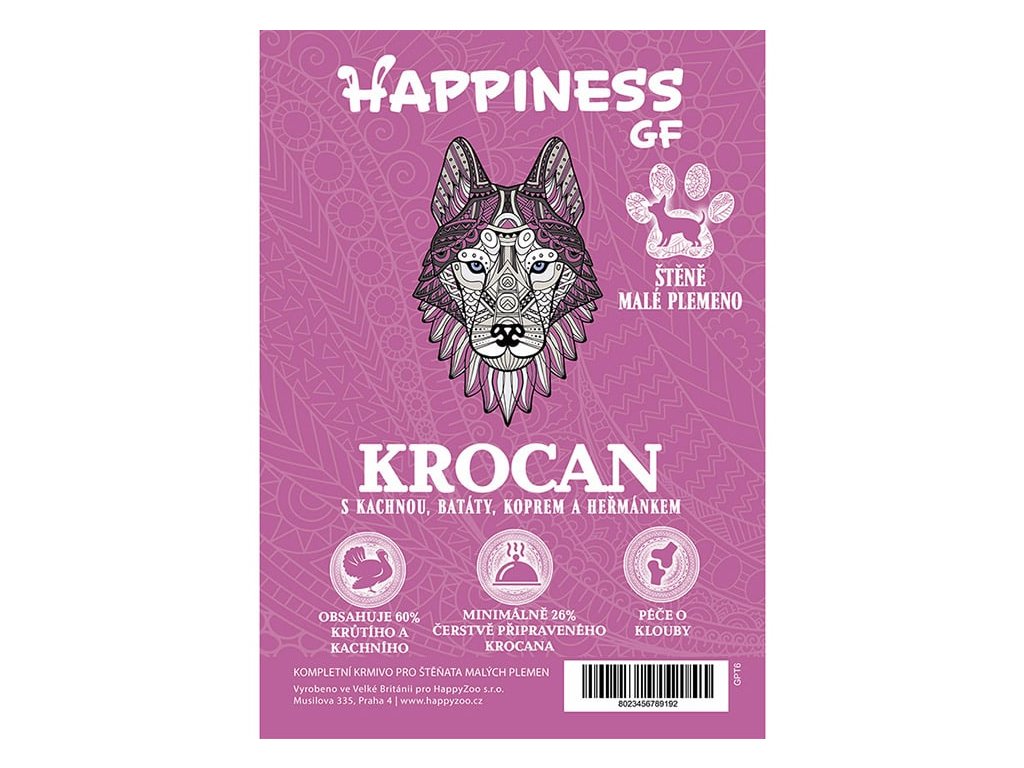 HAPPINESS Grain Free Puppy Small - krocan s kachnou, batáty, koprem a heřmánkem 6kg