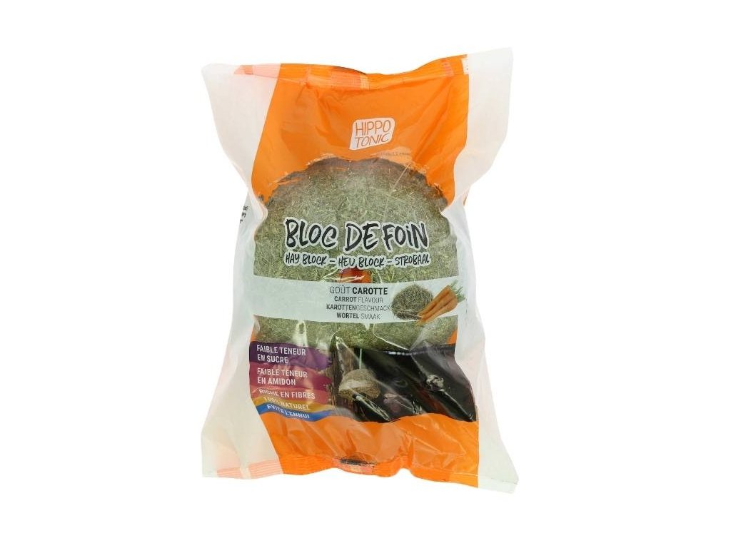 - ochucený lisovaný blok z přírodního sena s příchutí mrkve
