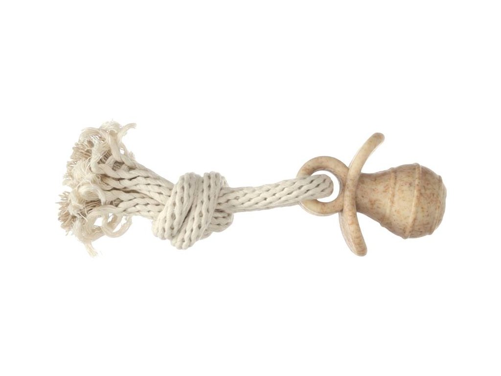 Hračka FLAMINGO guma TPR s bambusovými vlákny - Wilga dudlík s provazem 24x7,7x4,7cm
