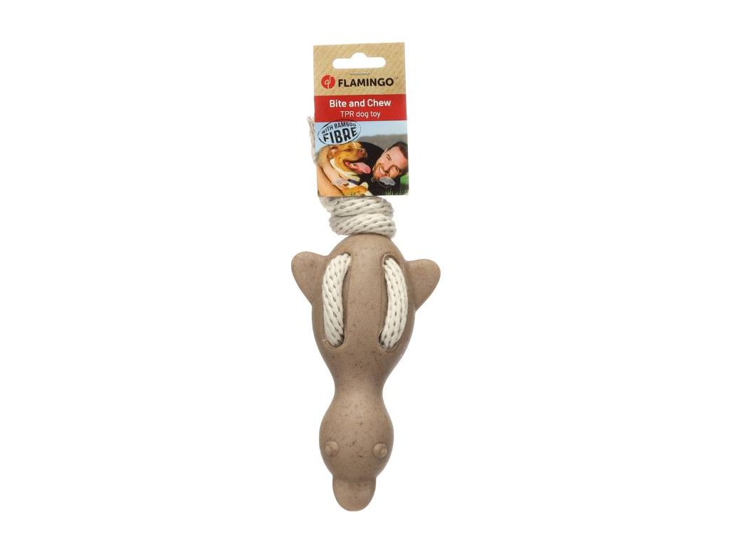 Hračka FLAMINGO guma TPR s bambusovými vlákny - Wilga kachna s provazem 27x9,8x6,5cm