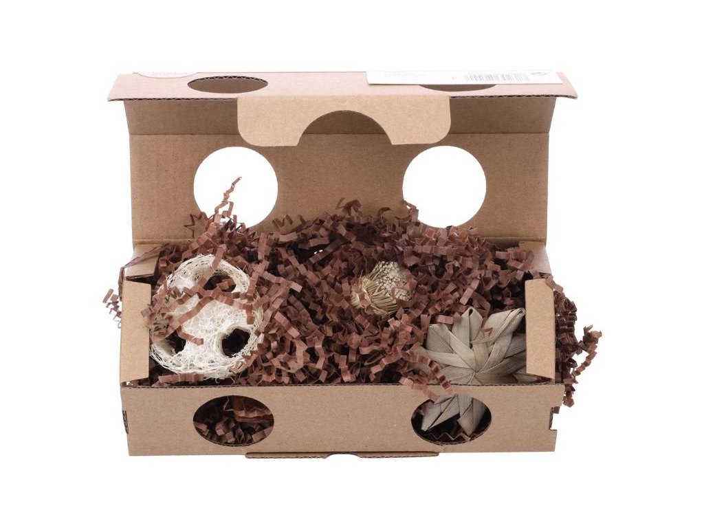 - obsahuje různé textury pro hlodání a hraní
