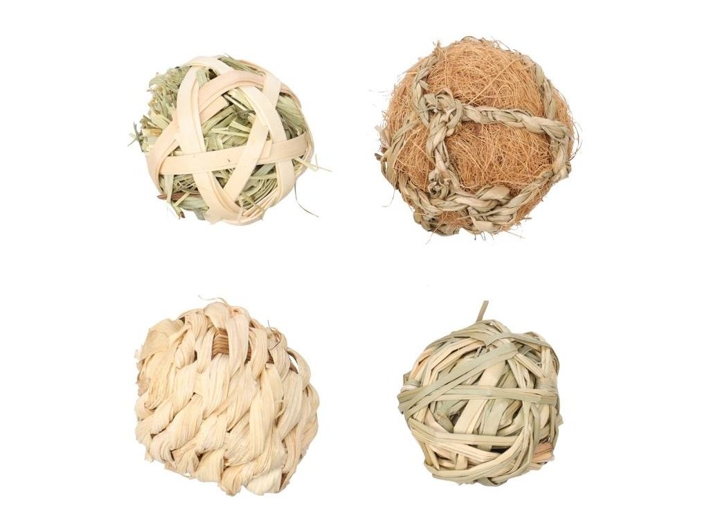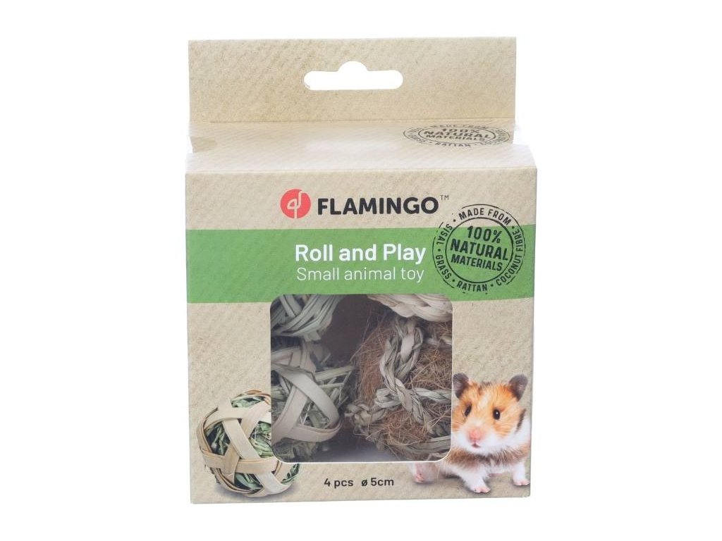 Hračka pro hlodavce FLAMINGO - Snuffi set ratanových a sisalových míčků 5cm (4ks)