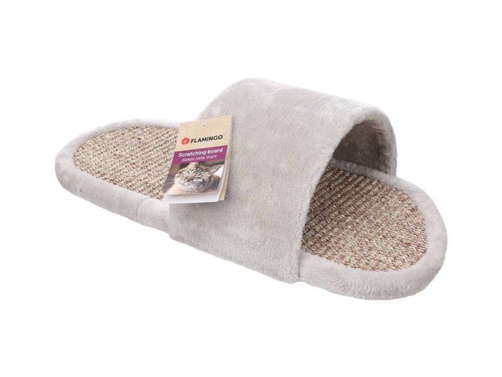 Hračka pro kočky FLAMINGO - Cleo škrábací pantofle šedá 50,5x24x14cm