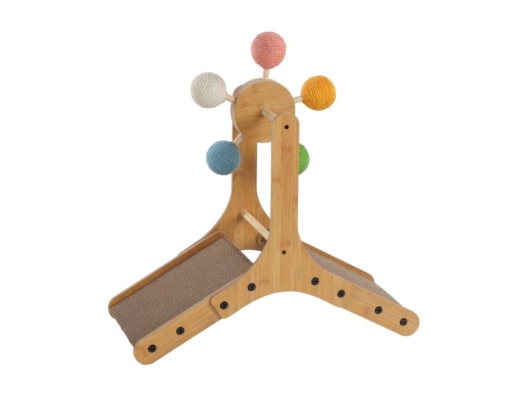 Hračka pro kočky FLAMINGO - Dolf dřevěné škrabadlo s kartonem a hračkou 56x26,5x57,5cm