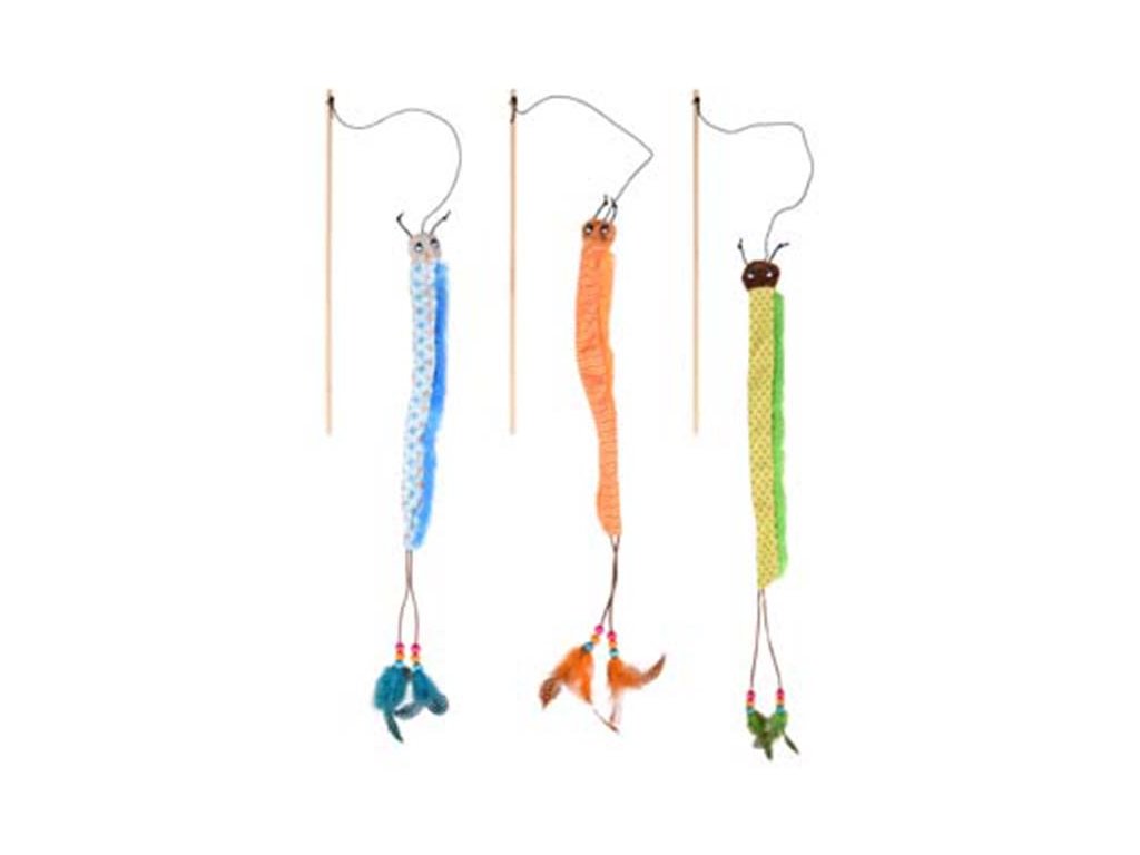Hračka pro kočky FLAMINGO - Kirk škádlítko se stonožkou 96cm (MIX BAREV)