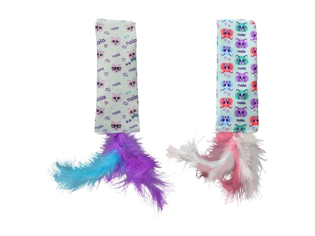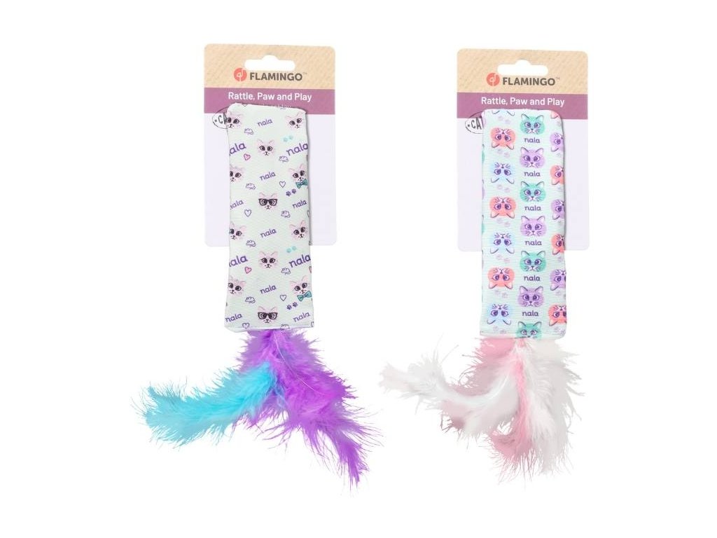Hračka pro kočky FLAMINGO - Veza pytlík s peřím 15,5x5,5cm (MIX BAREV)