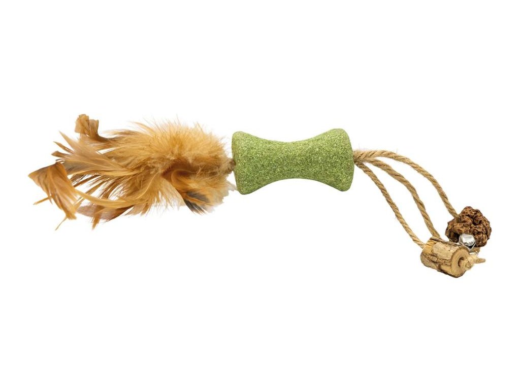 Hračka pro kočky HIPHOP catnip - Catnipová špulka s peřím a provázky 25cm
