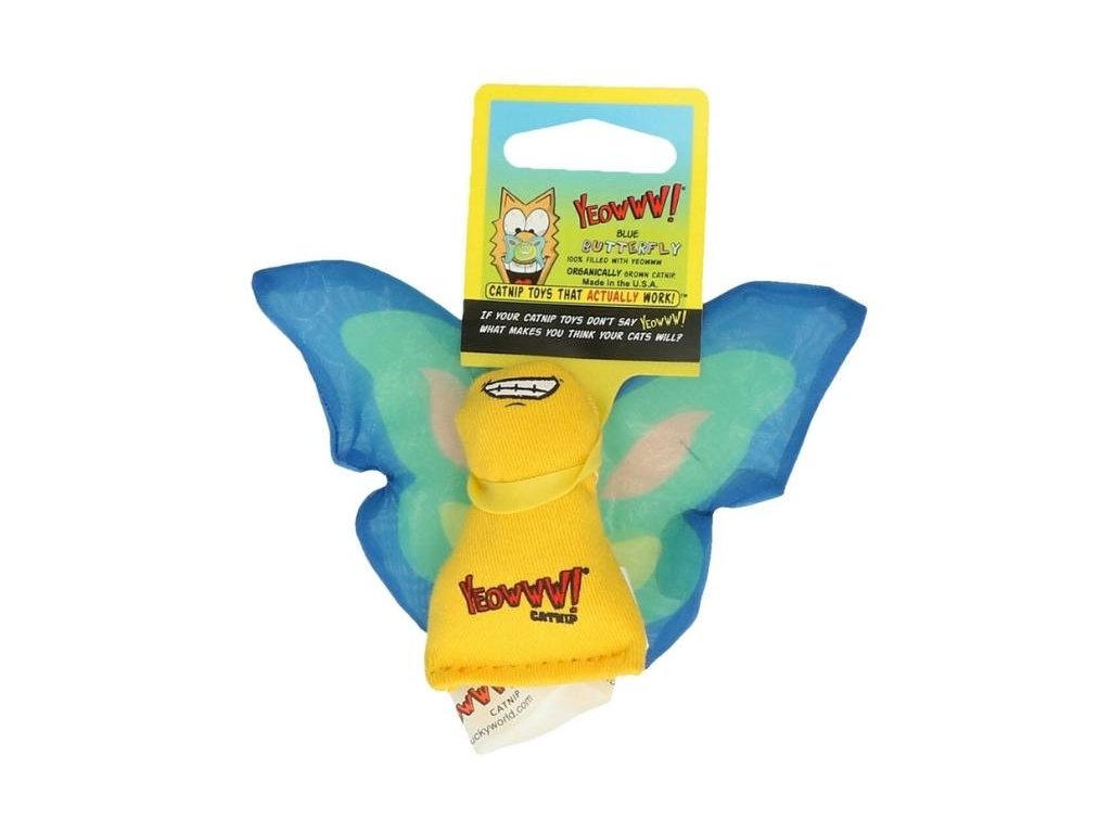 Hračka pro kočky YEOWWW! motýl plněný bio šantou modrý 11x5,5cm
