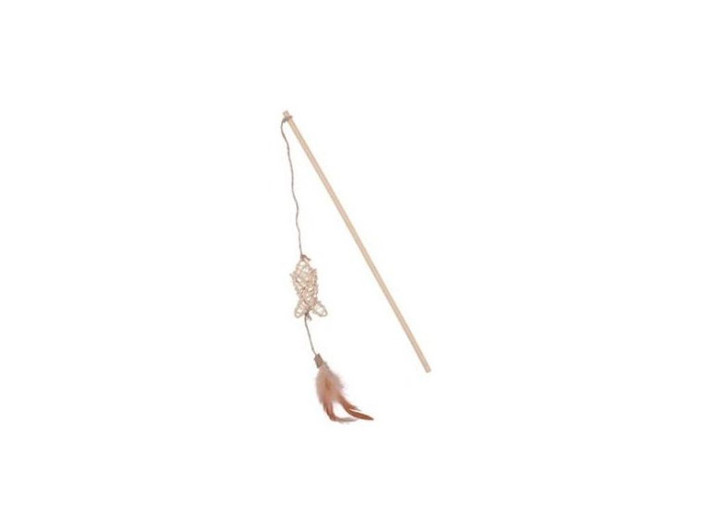 Hračka pro kočky ZOLUX - Ethicat Rattan škádlítko ryba s pírkem 5,4x1,2x45cm