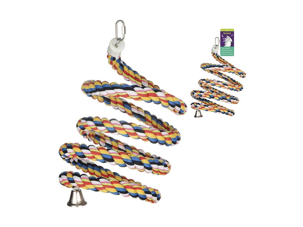 Hračka pro ptáky TOMMI - bavlněná spirála se zvonkem 40-160cm (DOPRODEJ)