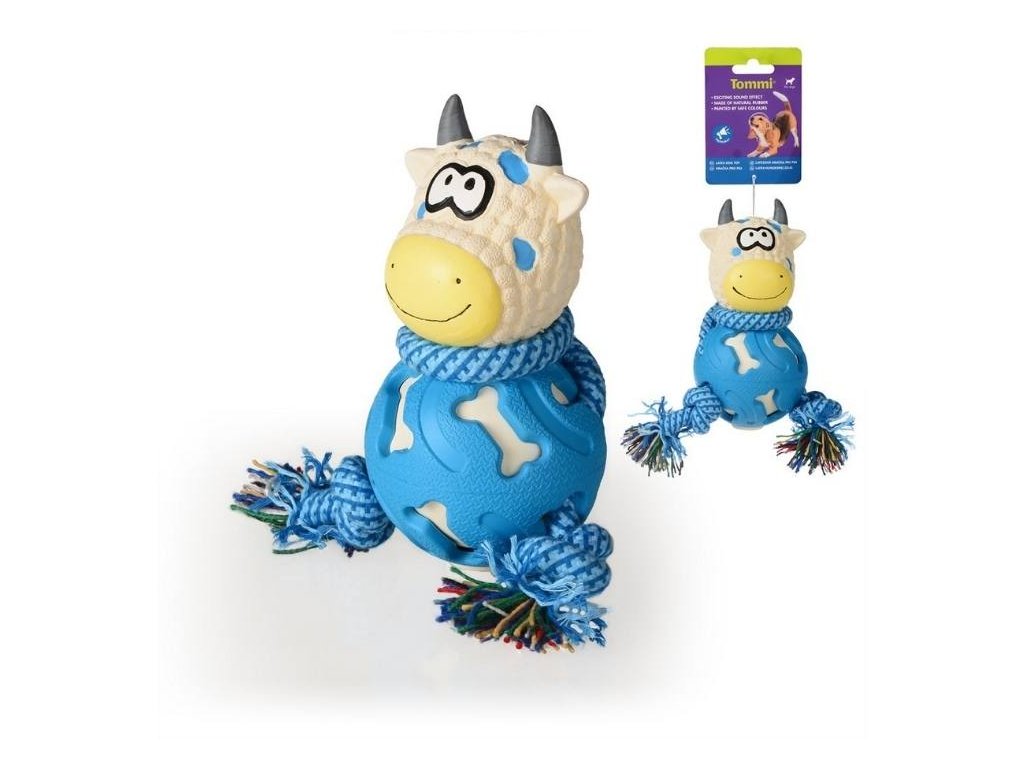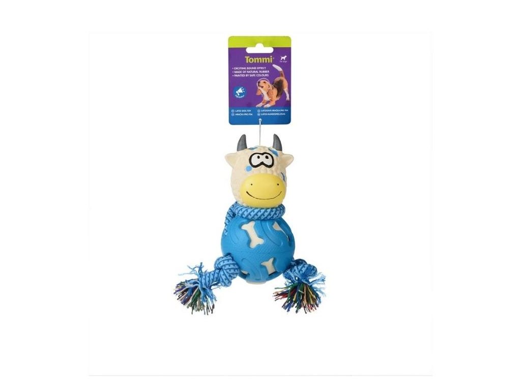 Hračka TOMMI latex - kravička 3v1 modro-bílá 18,5cm