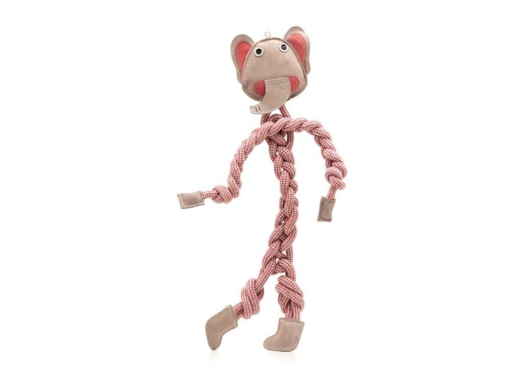 Hračka WOOFFEE pravá kůže - provazový dlouhán Slon 65cm