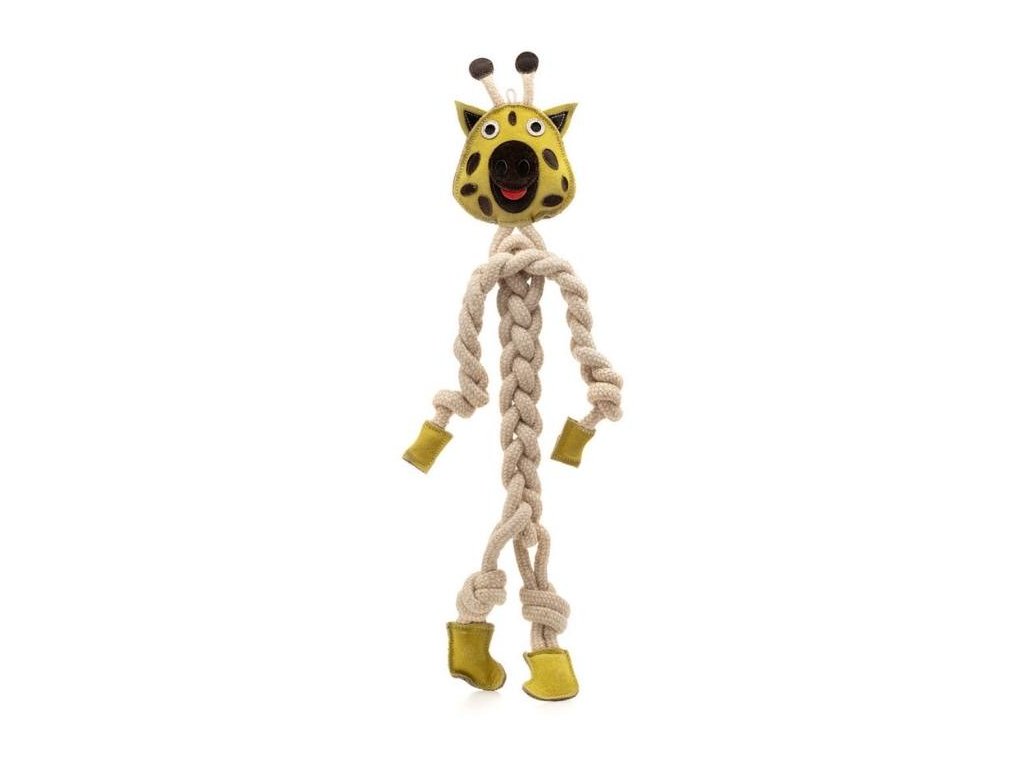 Hračka WOOFFEE pravá kůže - provazový dlouhán Žirafa 69cm