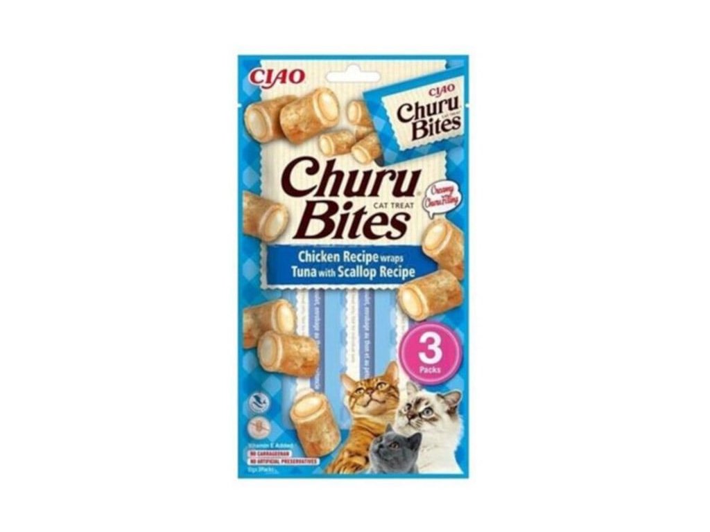 INABA Churu Cat Bites Snack kuře, tuňák a hřebenatka 3x10g