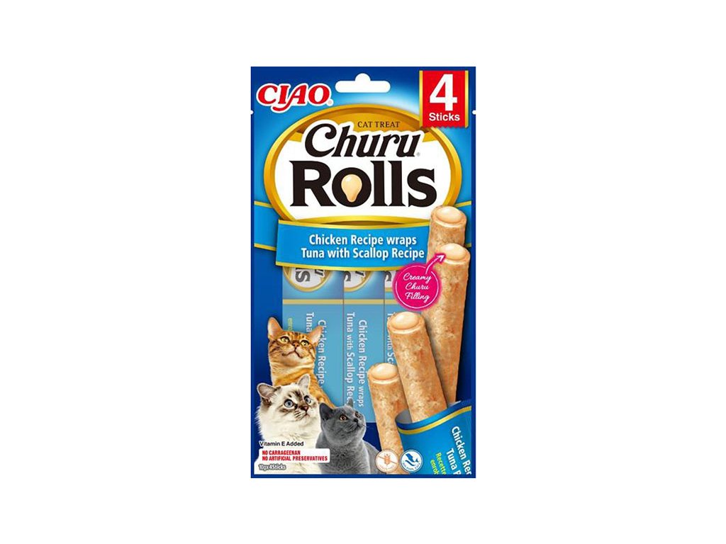 INABA Churu Cat Rolls Snack kuře, tuňák a hřebenatka 4x10g