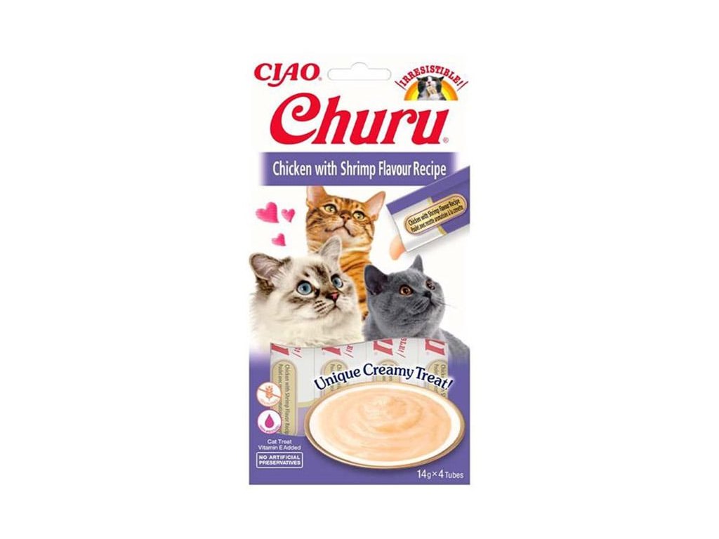 INABA Churu Cat Snack kuře s krevetovou příchutí 4x14g