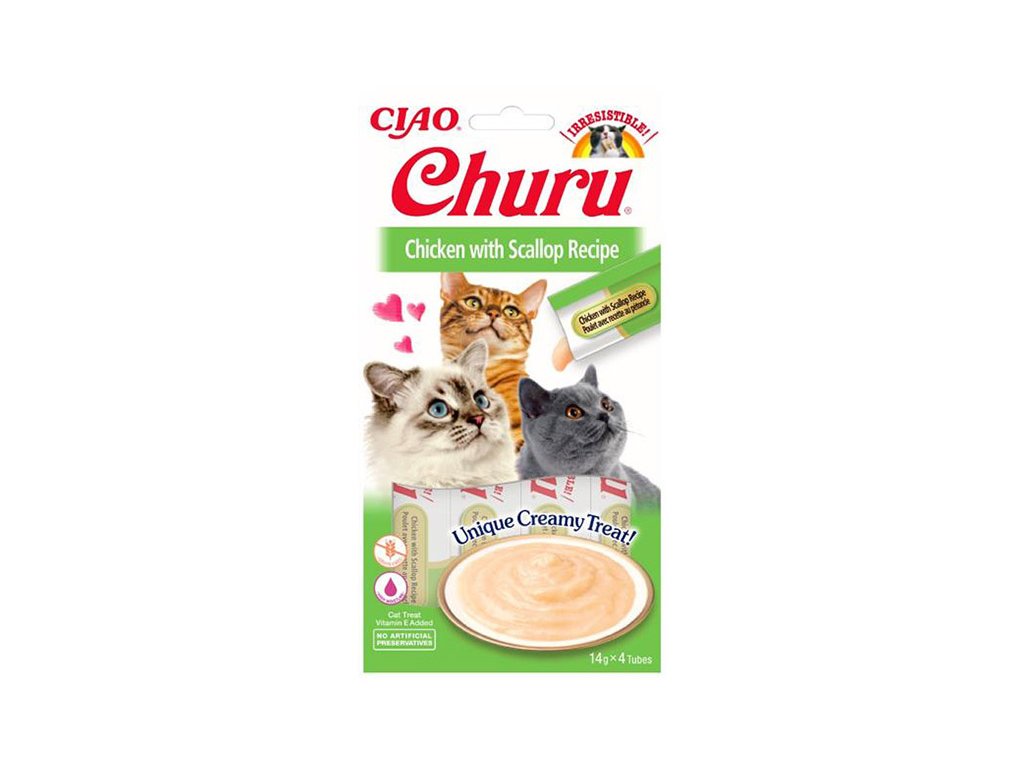CIAO Churu Cat Snack kuře s příchutí hřebenatek 4x14g