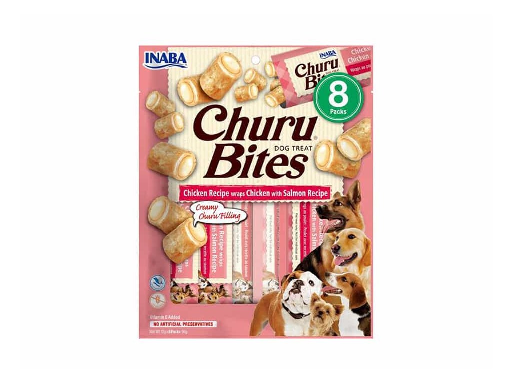 INABA Churu Dog Bites Snack kuře a losos 8x12g