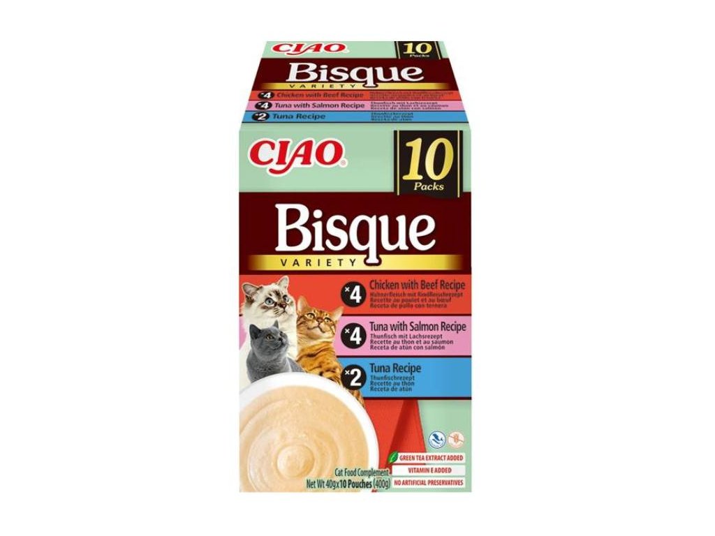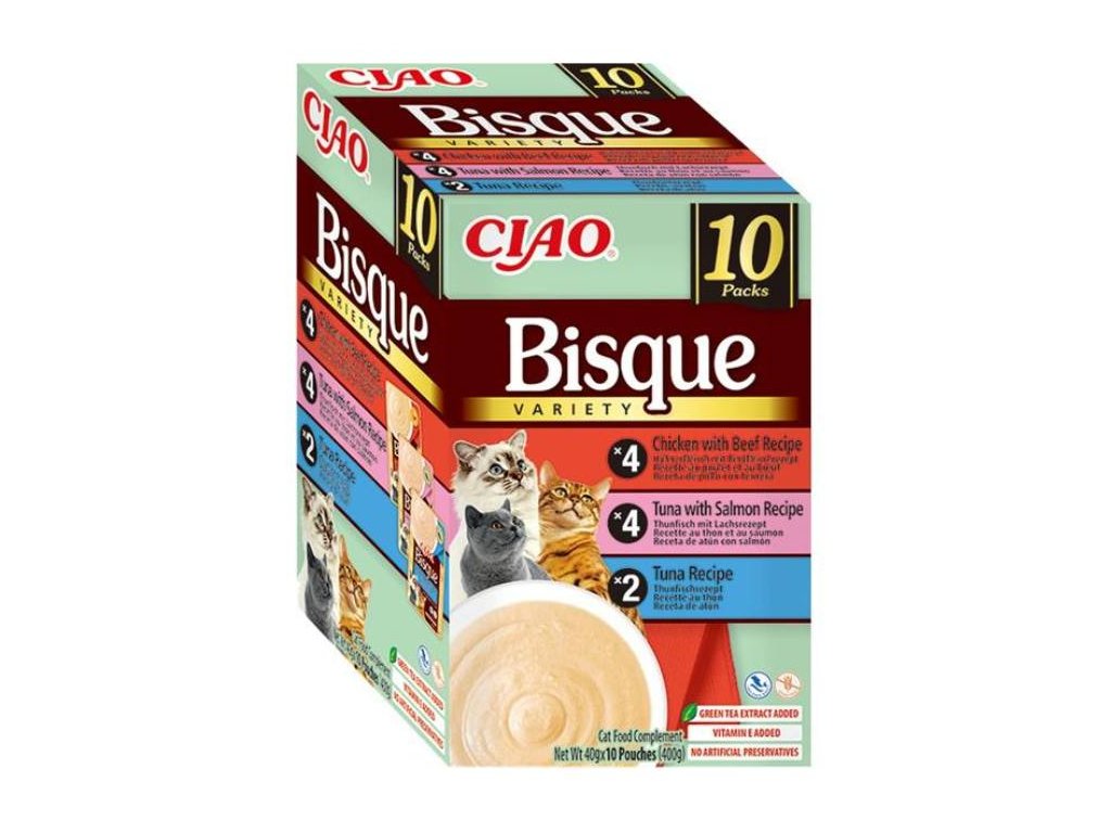 CIAO Cat Bisque kuře s hovězím, tuňák s lososem a tuňák 10x40g (multipack)