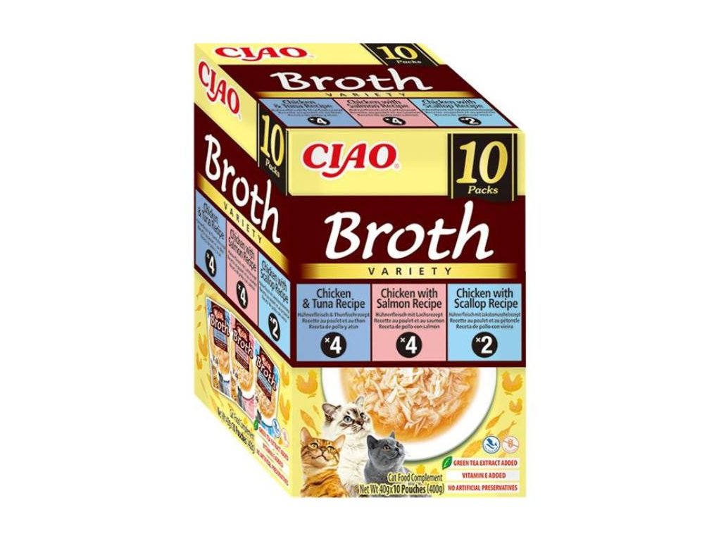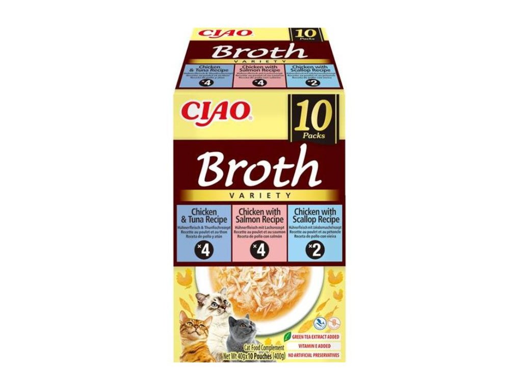 CIAO Cat Broth kuře, kuře s lososem a kuře s hřebenatkou 10x40g (multipack)