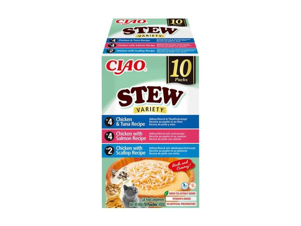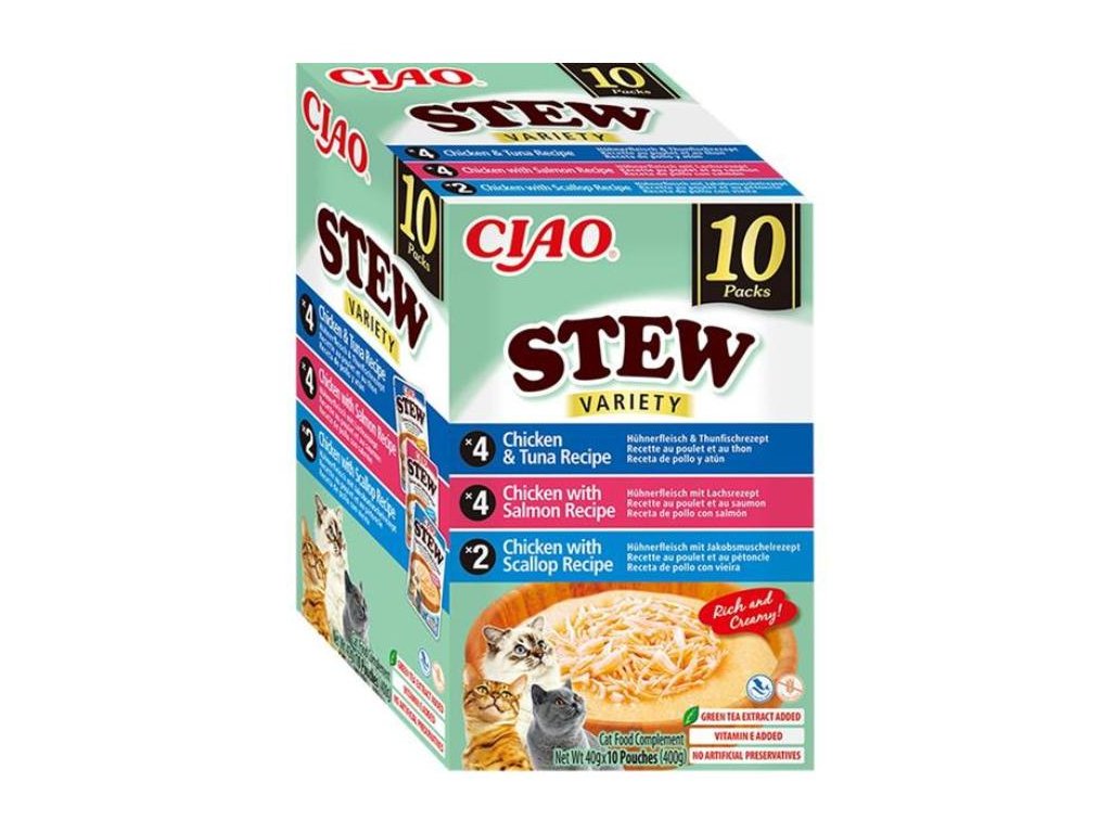 INABA Ciao Cat Stew kuře, kuře s lososem a kuře s hřebenatkou 10x40g (multipack)