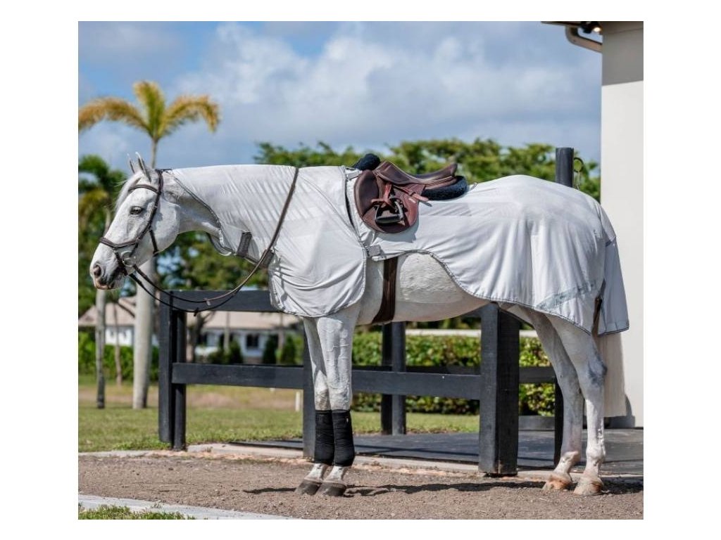 Síťovaná jezdecká deka proti hmyzu, střižená tak, aby se přizpůsobila tvaru sedla. Blokuje i 65 % škodlivého UV záření. Je vyrobena z lehkého, měkkého a skvěle prodyšného materiálu.