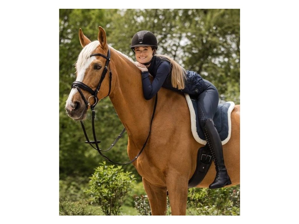 Měkký jezdecký pad se spodní stranou z umělé kožešiny pro maximální pohodlí koně i jezdce. Pad má povrch z protiskluzového semiše a madlo vepředu pro lepší vedení sedu jezdce.