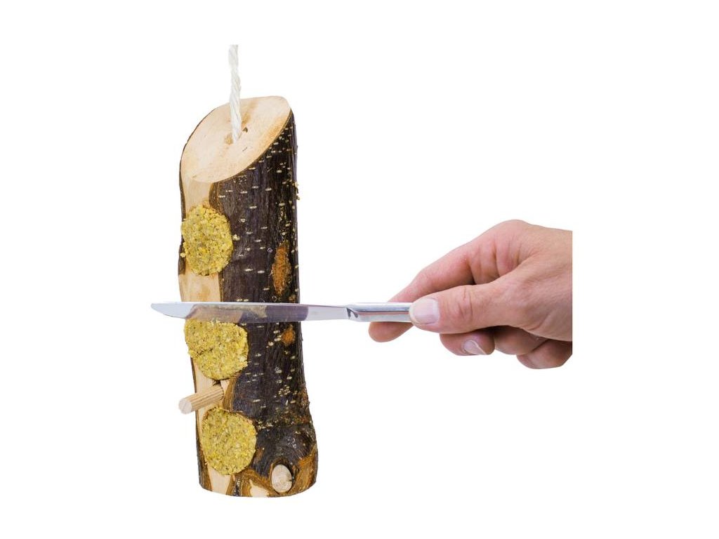 - skládá se z krmné stanice z pravého dřeva a porce výživného a lahodného kůrového másla