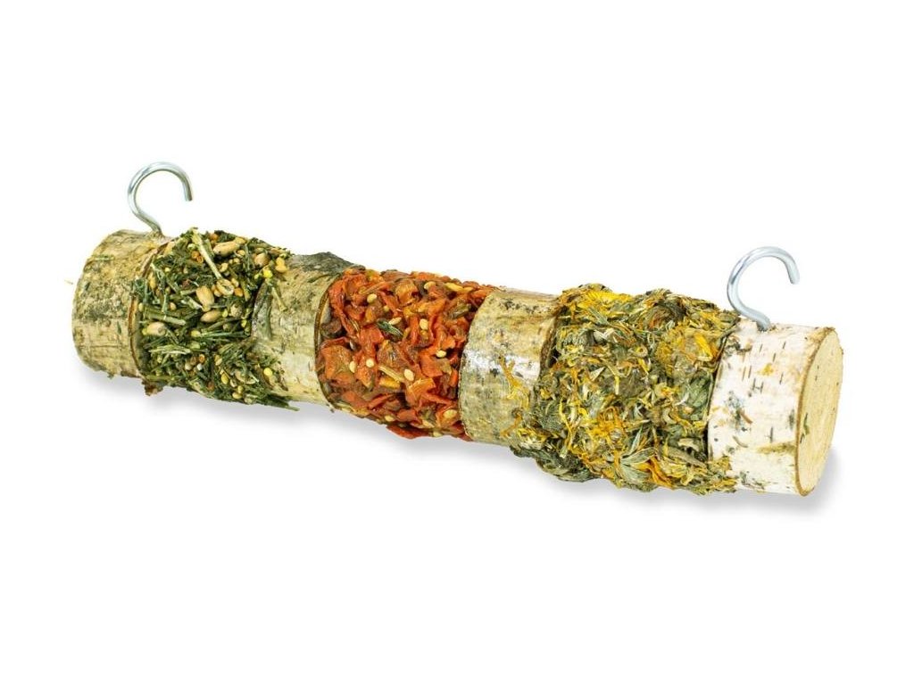 SLOŽENÍ: dřevo z listnatého stromu, výplň (mrkev 24,5 %, květy měsíčku lékařského 21,7 %, proso la plata, hrachový škrob, petržel 10,4 %, pšenice, proso manna)