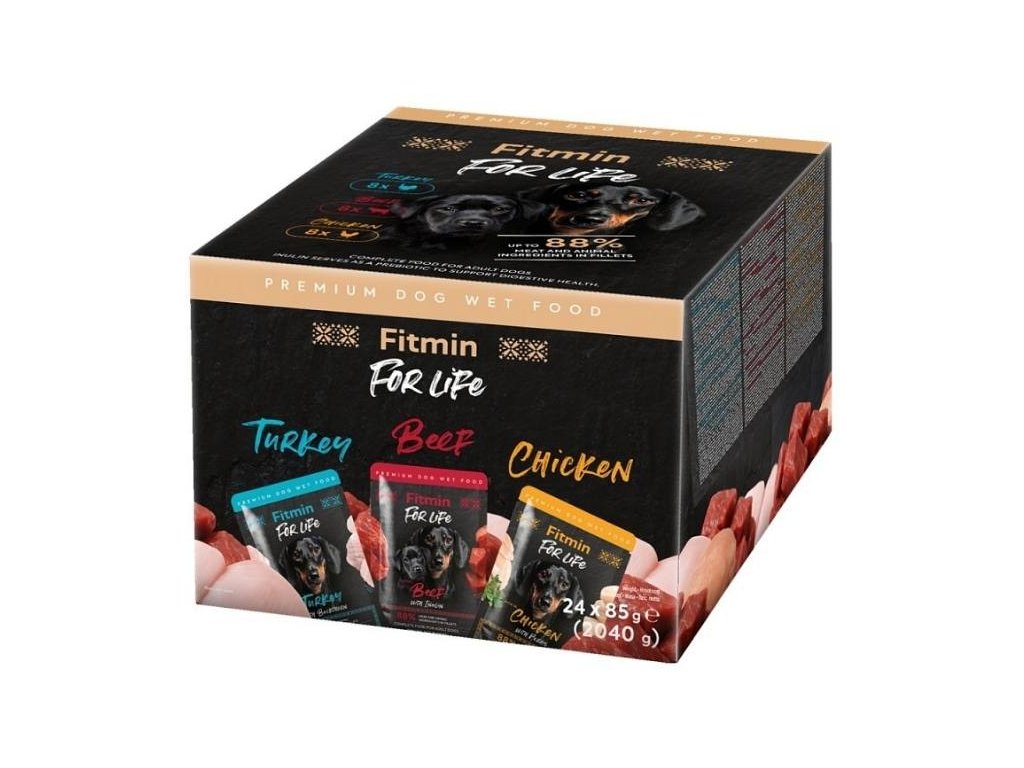 Kapsička FITMIN For Life Dog Turkey, Beef and Chicken 24x85g (multipack)