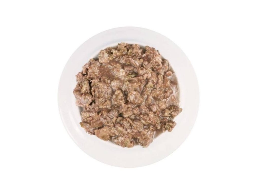 SLOŽENÍ: kuřecí maso 60 %, kuřecí srdce 25 %, kuřecí vývar 11 %, rozmarýn 2 %, minerály 1 %, prebiotika (FOS, MOS) 1 %