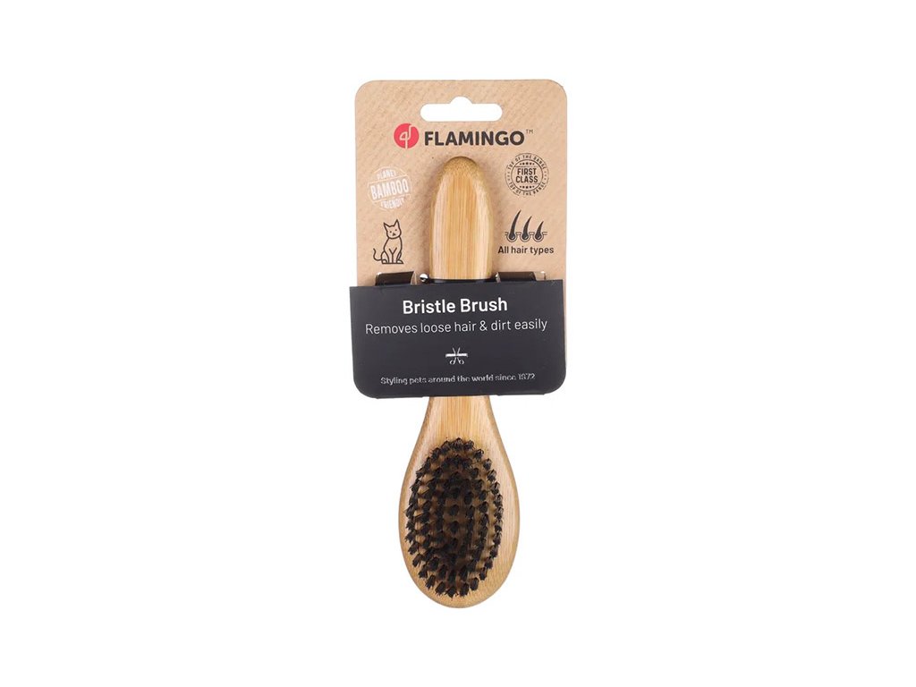 Kartáč pro kočky FLAMINGO Babu z bambusu se štětinami (S) 19x5,2x3,3cm