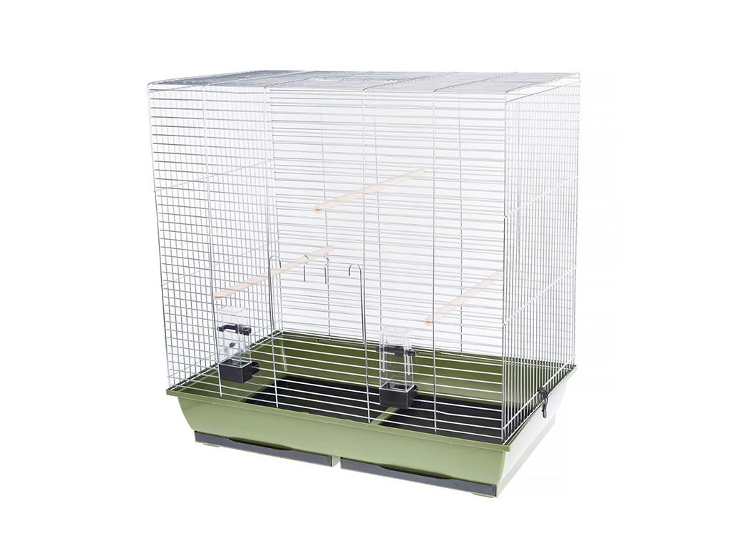 - součástí klece jsou dva zásobníky na krmivo a tři bidýlka