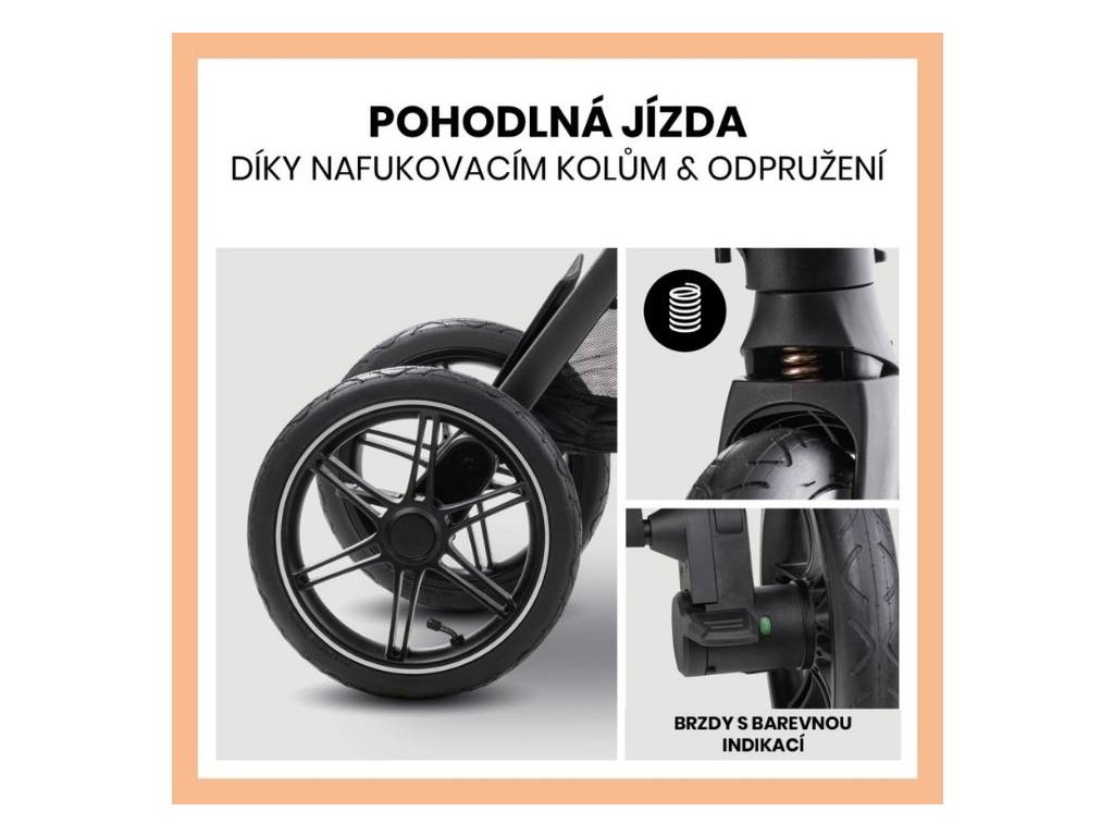 UPOZORNĚNÍ: kočárek - Nikdy nenechávejte dítě bez dozoru. Používejte postroj, jakmile se dítě umí bez pomoci posadit. Vždy používejte zádržný systém. Pro novorozence doporučujeme vždy používat úplně sklopenou polohu sedačky. Nepoužívejte tuto sedačku pro děti mladší 6 měsíců. Tento výrobek není vhodný pro běhání nebo jízdu na bruslích! Před použitím si pozorně přečtěte přiložené informace k použití.