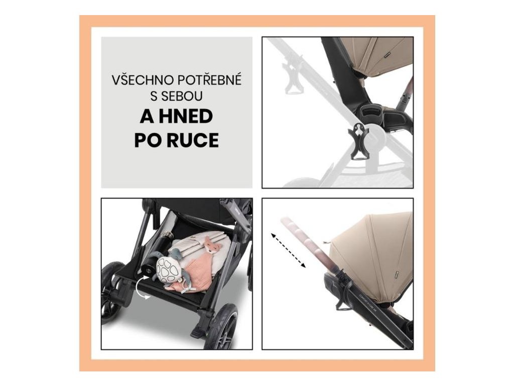 BALENÍ: držák na nápoje, nánožník, návod, konstrukci kočárku, sportovní sedátko, korbičku, univerzální adaptér na autosedačku