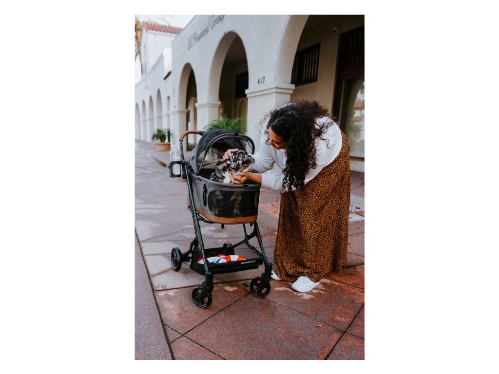 - dvojí vstup umožňuje snadný přístup k vašemu mazlíčkovi z obou stran kočárku, boudičku je možné upevnit tak, aby držela zavřená na obou stranách