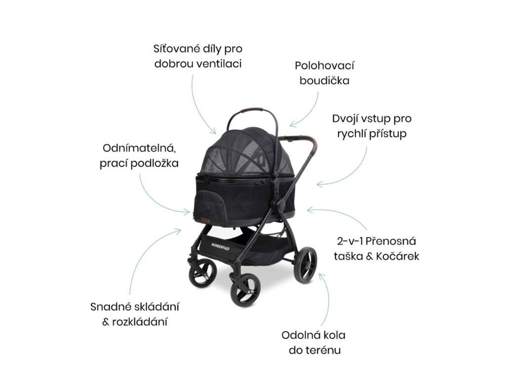 Kočárek pro psy a kočky WONDERFOLD P3 Jet Black 2v1 (do max 22,7kg)