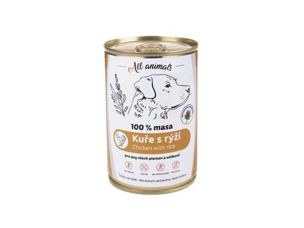 Konzerva ALL ANIMALS kuřecí mleté s rýží pro psy 400g