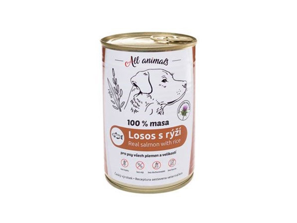 Konzerva ALL ANIMALS losos mletý s rýží pro psy 400g