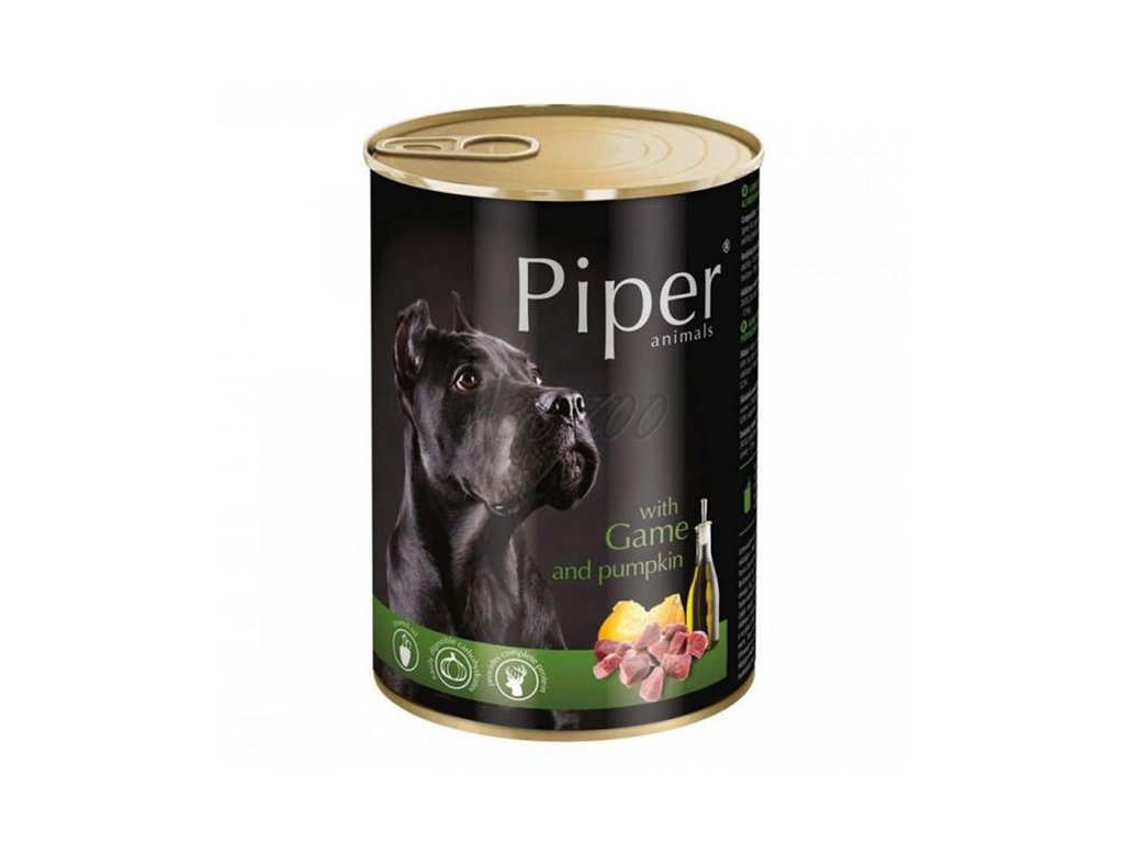 SLOŽENÍ: maso a produkty živočišného původu 65 % (hovězí maso 10 %, vepřové maso 10 %, zvěřina 10 %, hovězí srdce 3 %, kuřecí srdce 3 %), vývar, zelenina (dýně 4 %), minerální látky, oleje a tuky (lněný olej 0,2 %), sušený rozmarýn 0,01 %