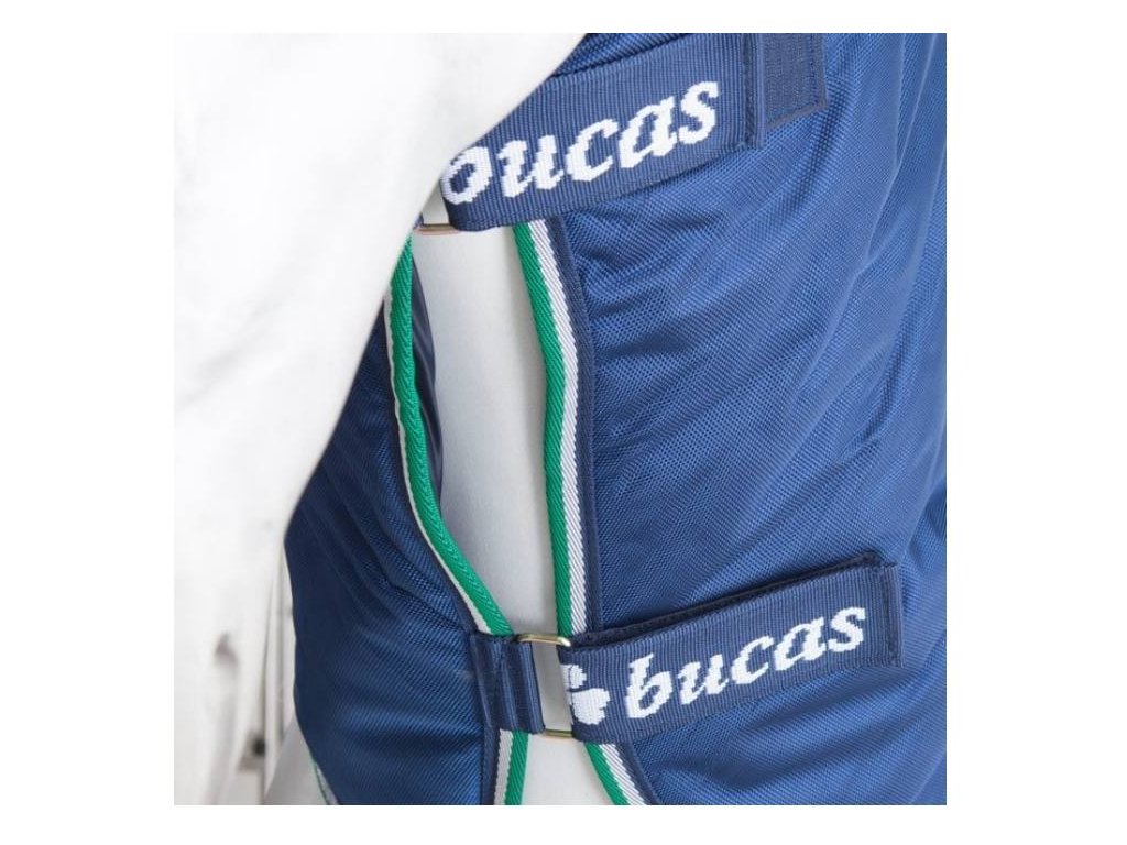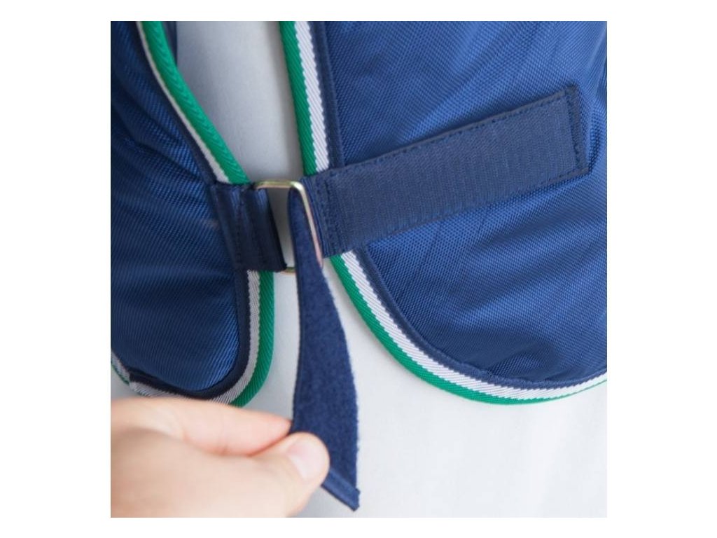 Krční díl je opatřen jednoduchým zapínáním na suché zipy a pomocí suchých zipů se také snadno připíná k dece.