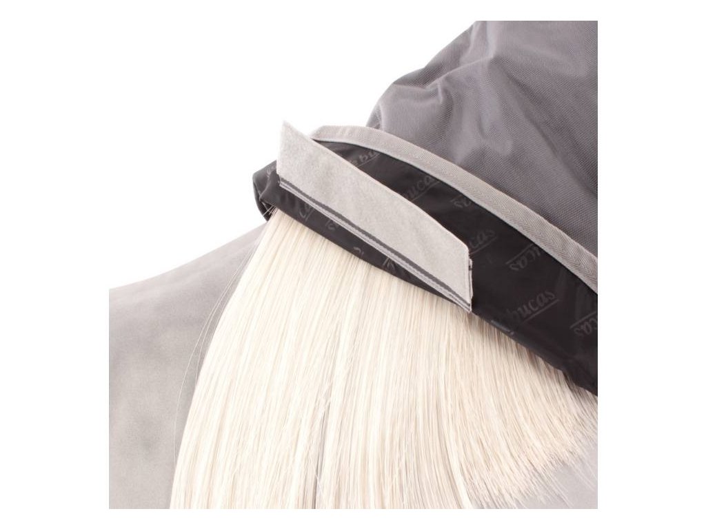 Krční díl je vybaven vnitřní fleecovou podšívkou Stay-dry uvnitř materiálu, která účinně odvádí vlhkost, zajišťuje rychlé vysušení srsti a zůstává stále suchá. Podšívka je umístěna uvnitř, aby se zabránilo odírání hřívy, takže krční díl lze použít i na vlhkou srst.