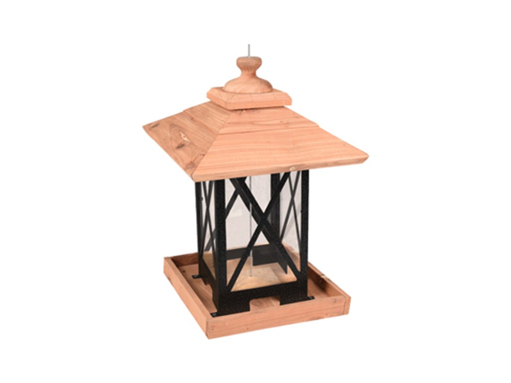 Krmítko pro venkovní ptactvo FLAMINGO Leya dřevěné s kovem černohnědé 22x22x32cm