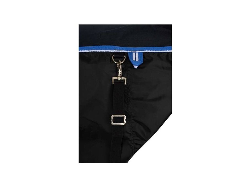 Zapínání vpředu je řešeno dvěma přezkami. Pod břichem jsou křížové popruhy a elastické popruhy mezi zadní nohy pomáhají udržet deku na místě. Dlouhá ocasní klopa poskytuje lepší krytí v oblasti ocasu. Reflexní prvky zvyšují viditelnost za šera a deště.