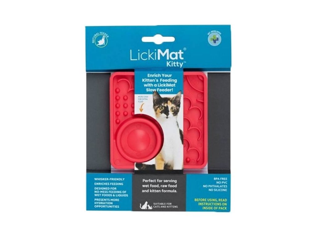 - lízací podložka LickiMat Kitty má po celé ploše rozmístěny výstupky, vlnky i menší mističku