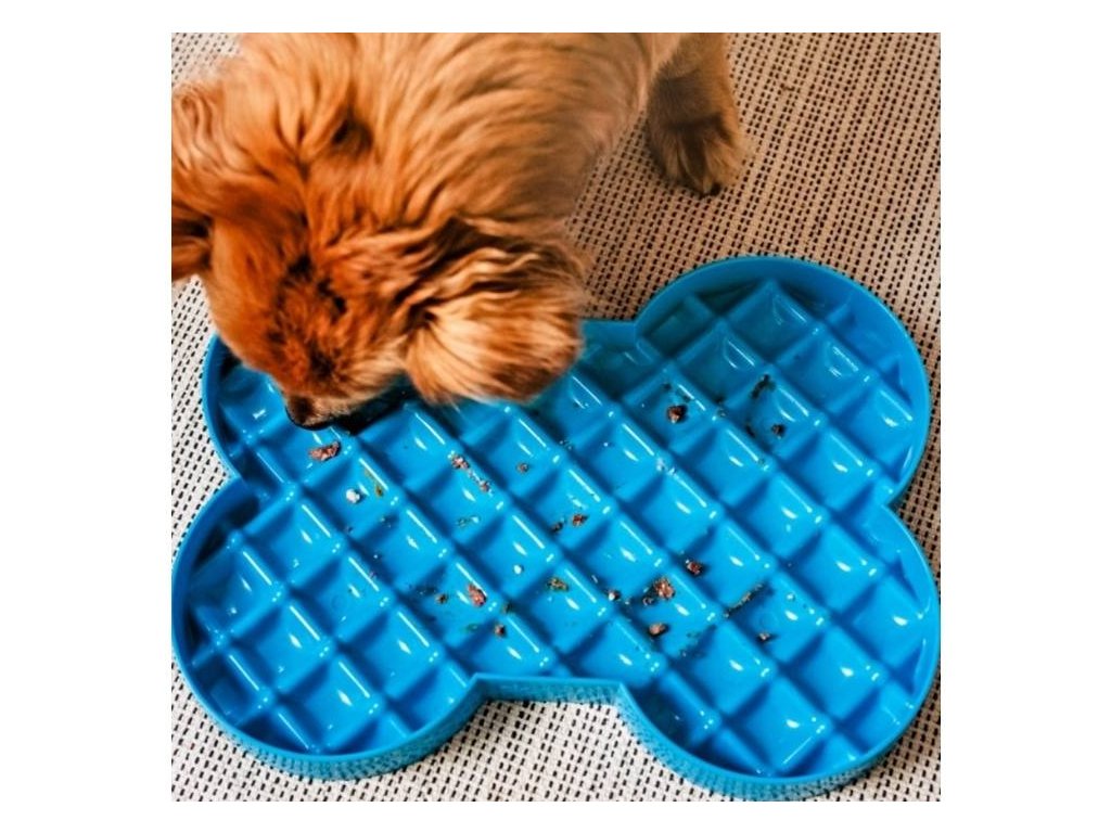 LICKIMAT SloDog lízací a zpomalovací miska kost modrá 26x35cm (500ml)