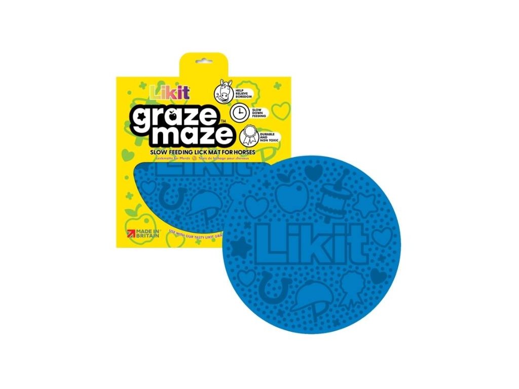 Likit Graze Maze je odolná gumová lízací podložka, která pomáhá zmírnit nudu, odvést pozornost nebo jednoduše zpomalit příjem krmiva. Můžete ji vložit na dno krmného kbelíku jako zpomalovací krmítko, nebo ji potřít Likit Graze pastou, která poslouží jako „lepidlo“ pro posypání krmivem a pamlsky – a vytvoří tak lahodnou svačinku pro vašeho koně.