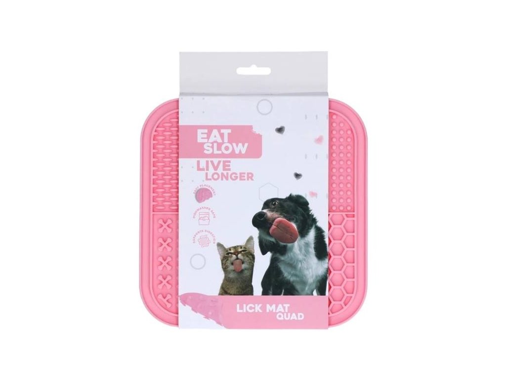 Lízací podložka EAT SLOW LIVE LONGER Quad růžová 20x20cm