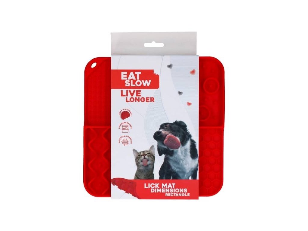 Lízací podložka EAT SLOW LIVE LONGER Rectangle červená 21x21cm