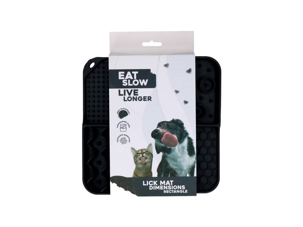 Lízací podložka EAT SLOW LIVE LONGER Rectangle šedá 21x21cm